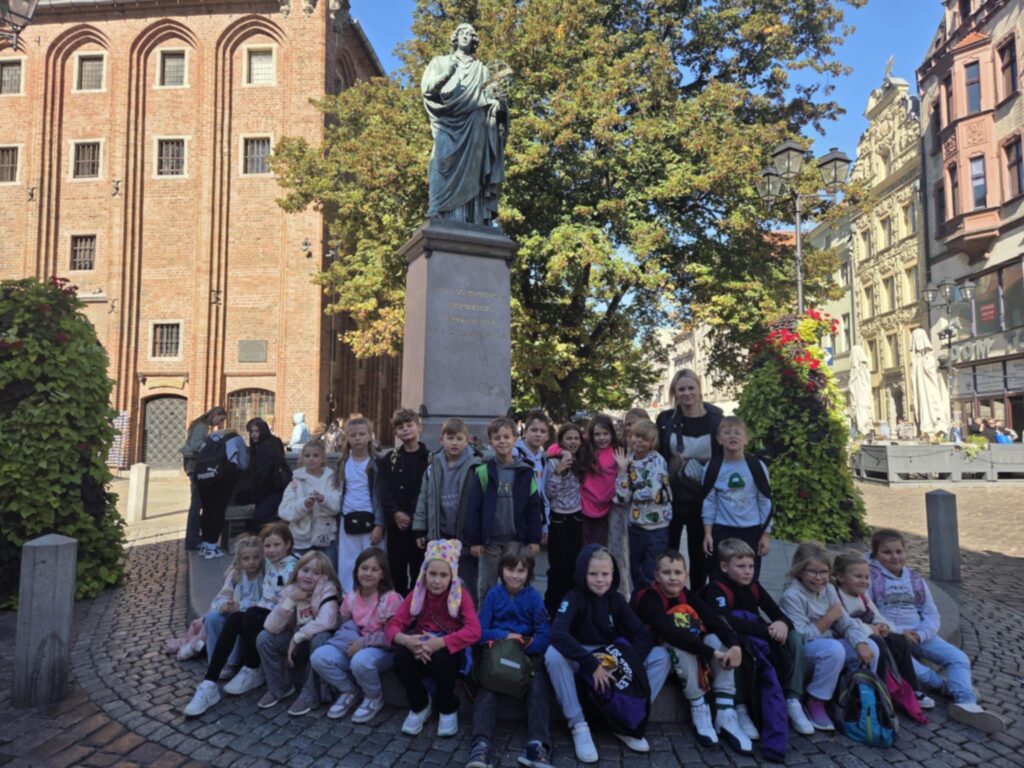 26 września uczniowie klas 2b i 2c wybrali się na wspólną wycieczkę do Torunia – jednego z najpiękniejszych miast w Polsce. Uczniowie wzięli udział w pokazie astronomicznym w toruńskim Planetarium. Zwiedzili Stare Miasto, gdzie mogli podziwiać zabytkowe kamienice, mury obronne oraz słynną Krzywą Wieżę. Przewodnik opowiedział wiele ciekawostek o historii miasta oraz o życiu Mikołaja Kopernika. Kolejną atrakcją były warsztaty w piernikarni, podczas których każde dziecko mogło własnoręcznie wykonać piernik według tradycyjnego przepisu. Był również czas na spacer i zakup pamiątek – oczywiście nie zabrakło toruńskich pierników! Wycieczka do Torunia była nie tylko świetną zabawą, ale także okazją do nauki i poznania historii naszego kraju.