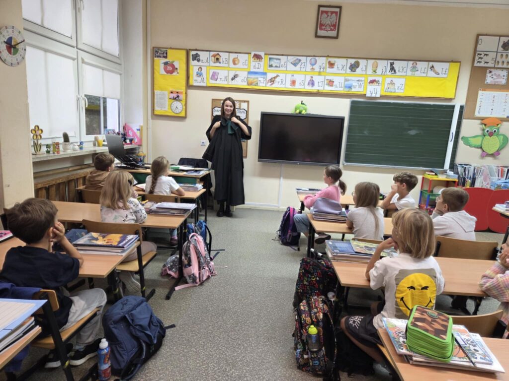 8 października klasy 2b i 2c miały wyjątkowego gościa! W ramach ogólnopolskiej akcji „Bajeczni Adwokaci” uczniowie wzięli udział w niezwykle ciekawej i ważnej lekcji. Dzieci z ogromnym zainteresowaniem słuchały bajki z morałem, a następnie rozmawiały o tym, jak wygląda praca adwokata.