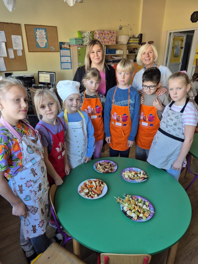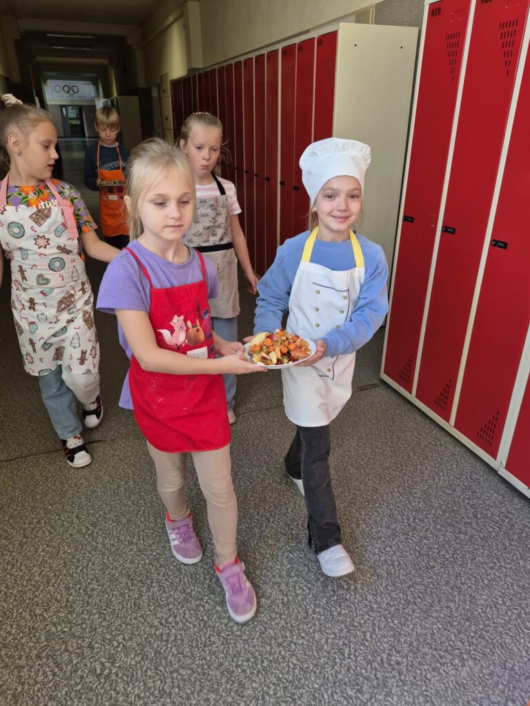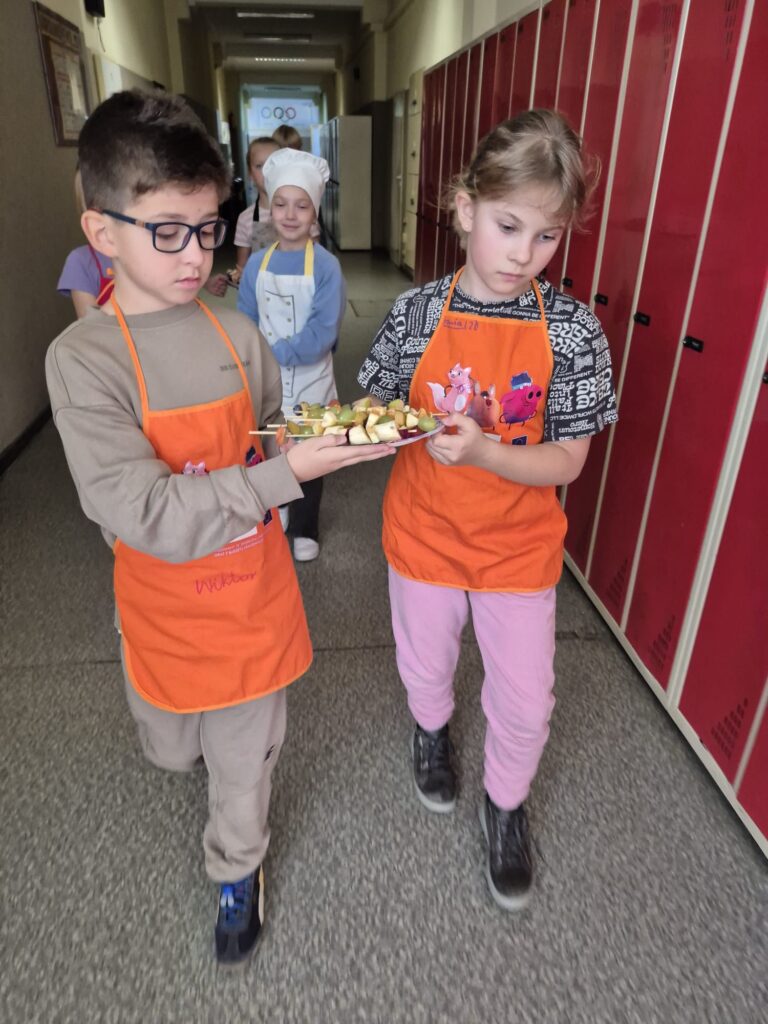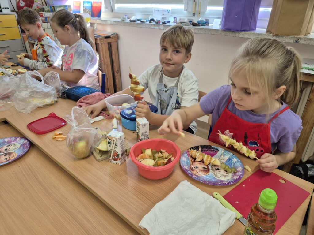 26.09.2025 obchodziliśmy w klasie 3 d Światowy Dzień Jabłka. W tym dniu uczniowie utrwalili budowę jabłek, poznali różne ich różne gatunki i smaki. Dowiedzieli się, jakie przetwory można zrobić z tego owocu oraz jak ważny wpływ ma on na nasze zdrowie. Dzieci odgadywały zagadki, rozwiązywały rebusy, poznały przysłowia, doświadczały za pomocą zmysłów.Na koniec wykonały sałatkę i szaszłyki, którymi podzieliły się z młodszymi uczniami.