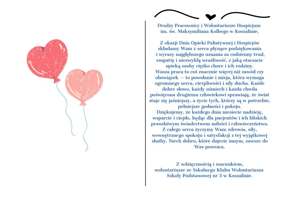 Z okazji Światowego Dnia Opieki Paliatywnej i Hospicjów uczniowie należący do Szkolnego Klubu Wolontariusza pod opieką pani Agnieszki Hamery odwiedzili Hospicjum im. św. Maksymiliana Kolbego w Koszalinie.