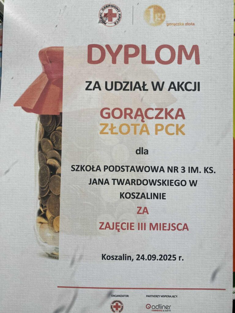 Pod koniec roku szkolnego nasza szkoła wzięła udział w ogólnopolskiej akcji „Gorączka Złota”, polegającej na zbiórce monet o nominałach 1, 2 i 5 groszy. Celem przedsięwzięcia było wsparcie dzieci i młodzieży poprzez pozyskanie funduszy na ciepłe posiłki, wypoczynek letni oraz edukację.