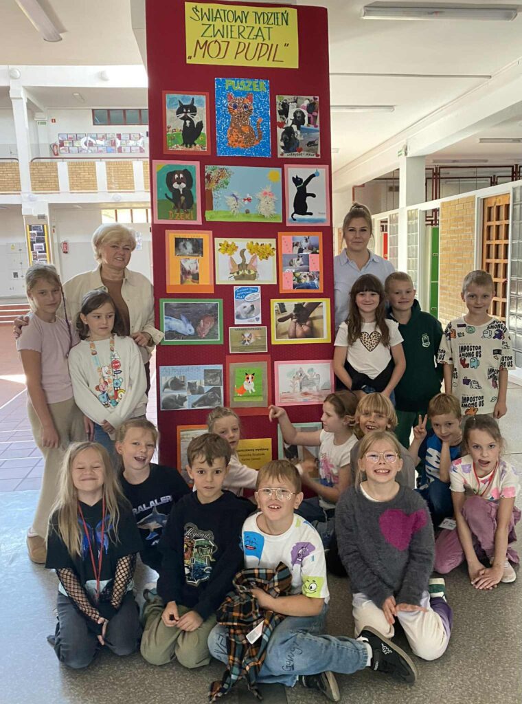 3 października dzieci świetlicowe uczestniczyły w zajęciach o swoich pupilach, inaugurując Światowy Tydzień Zwierząt. Uczniowie opisywali swoje zwierzątka i opowiadali, jak o nie dbają. Dowiedzieli się, jak pomóc bezpańskim i schroniskowym zwierzętom, jak bezpiecznie zachować się, gdy ich nie znamy. Panie nauczycielki zachęcały dzieci do pomocy i udziału w akcjach charytatywnych. Podczas zajęć uczniowie odgadywali nazwy zwierząt, znając tylko jedną cechę i oglądali wystawę poświęconą naszym braciom mniejszym. Rozstrzygnięcie konkursu plastycznego pt. „Mój pupil” nastąpi jeszcze w tym tygodniu.